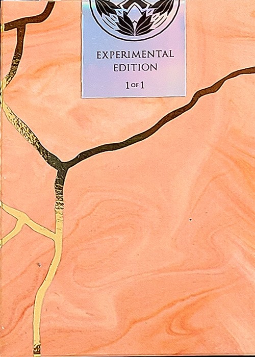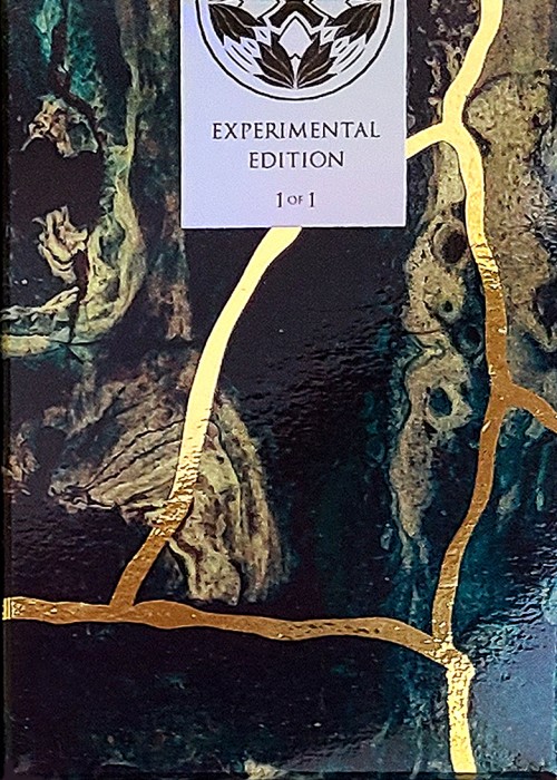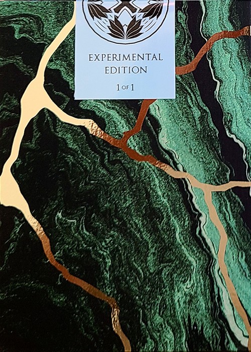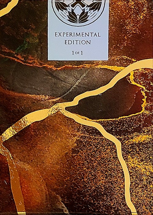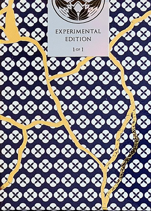 This deck is printed with a unique soft non-gloss finish showcasing the design below along with a shimmering gold foil that showcases the cracks and repairs of the deck. The cards inside feature an animated blooming back design that when flipped will show the logo flowering and closing with the different seasons. The deck gilding is made to match the tuck. The two piece Jokers showcase a piece of the card falling off with the repair paint revealing a ‘J’ to complete the Joker titling. The AoS follows similar in suit with a “broken” face revealing the spade shape with a custom pattern to match the back design and the ‘Experimental Series’ tag below.