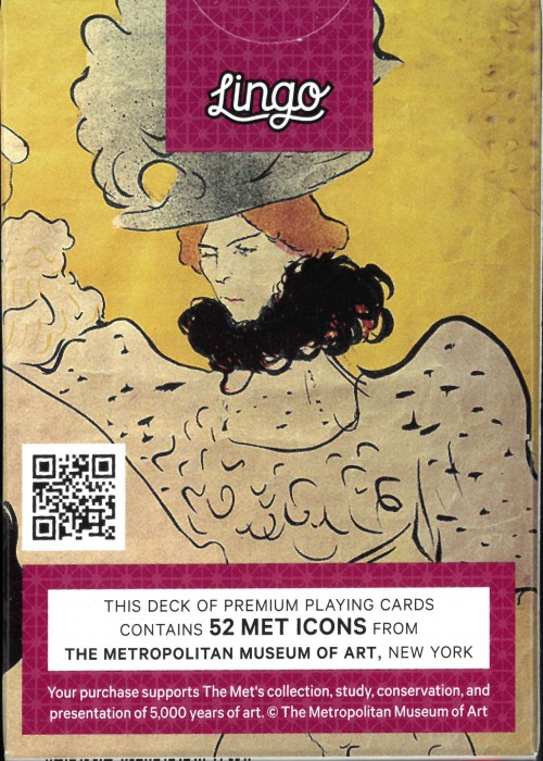 Collaboration between The Metropolitan Museum of Art and Lingo Playing Cards. The naming convention used by The Met appears to be in the style of "The Met x [collaborator]". Not explicitly stated but probably Classic Air Cushioned Finish.