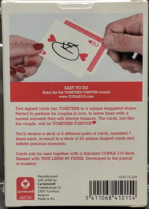 The set comes with all five decks of cards in the series, and when all five decks are lined up, they create a map of the world highlighting the five featured countries: France, Switzerland, Mongolia, China, and Egypt.