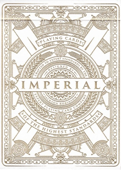 Designed and illustrated to the highest standards, the Imperial playing cards are truly a beautiful example of what luxury playing cards can be. The design of the tuck, back, and court cards are simple and elegant. With a minimalistic color palette of metallic gold, rich black, and crimson red, the Imperials will bring a new level of class to your table games. The tuck case is traditionally intaglio engraved and embossed using the traditional die stamping printing technique that gives the tuck case an opulent and tactile feel, that will please your fingertips as well as your eyes. The Imperial White Editions were printed in a very limited run of only 300 by The Expert Playing Card Company. The magnificent tuck case was engraved by Artistry Engraving & Embossing. The court cards and tuck were hand illustrated & designed by Jackson Robinson of Kings Wild Project.