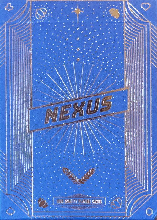 Designed by Max Bondarchuk, the Nexus deck has 100% custom artwork. The back design appears simple & traditional from a distance, but more details emerge when viewed up-close.