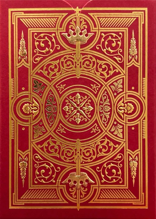 Fragmenta Test Print Deck which is essentially the same as the Fagmenta Deck but has different colors on the courts, the aces and slightly on the back. It also has very good handling but not as great as the official edition. Comes in a matt purple tuck with gold printing.