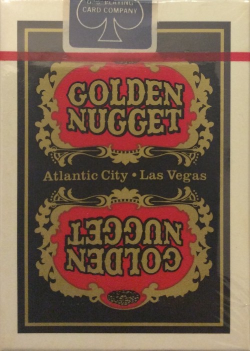 Golden Nugget are the second most famous vintage casino cards (after Jerry\'s Nugget). Produced since 1962 they have the most number of colors: Orange, Red, Purple, Black, Blue, Green, Brown, Red/Gold, Green/Gold, Gold/Black, Black/Gold (11 colors and 2 variant of 2 colors). The rarest are 1st run in Purple and Blue with 1-pack tax stamp (produced before June 22, 1965) and Orange deck.