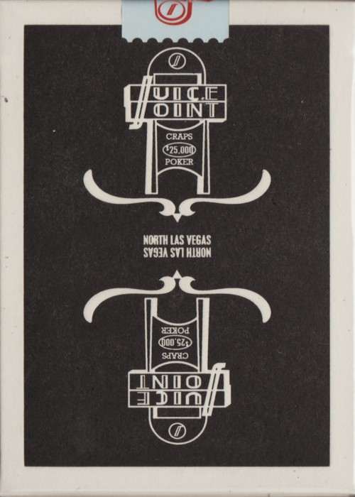 The Jucy Joint deck features a custom tuck, mirrored card backs, and Ace of Spades. Since this is a casino-inspired deck, the pips, indices, and courts are pretty much standard. Fans of vintage casino decks will not be disappointed!