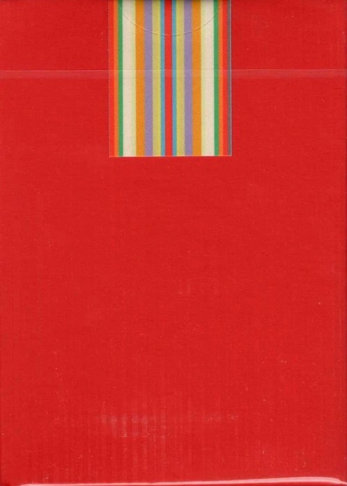 The back design features the vibrant, colorful stripes along with a surrounding thin Pantone silver metallic border. The cards are printed by the United States Playing Card Co. on a Premium (Bee®) Crushed Stock and are Traditionally cut.