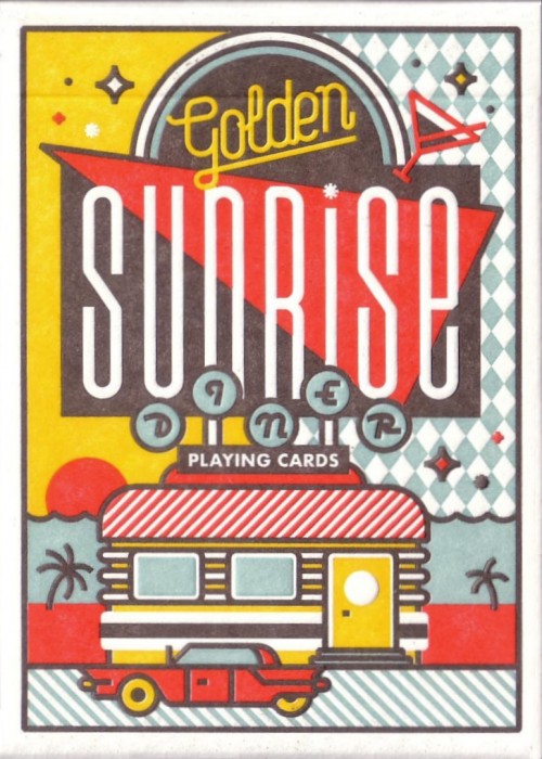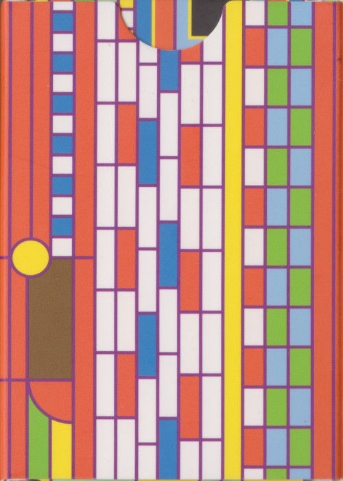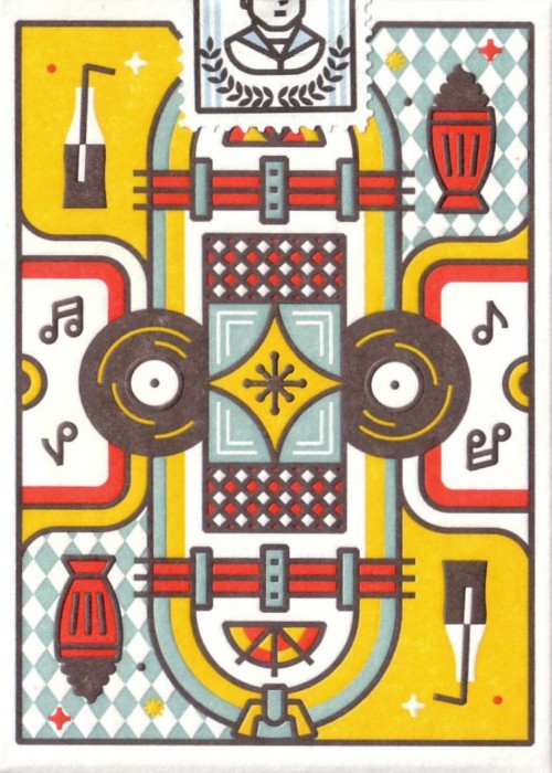 The traditional Court cards are modified with varying colors throughout the entire deck, and the letters/numbers utilize the custom striped font.