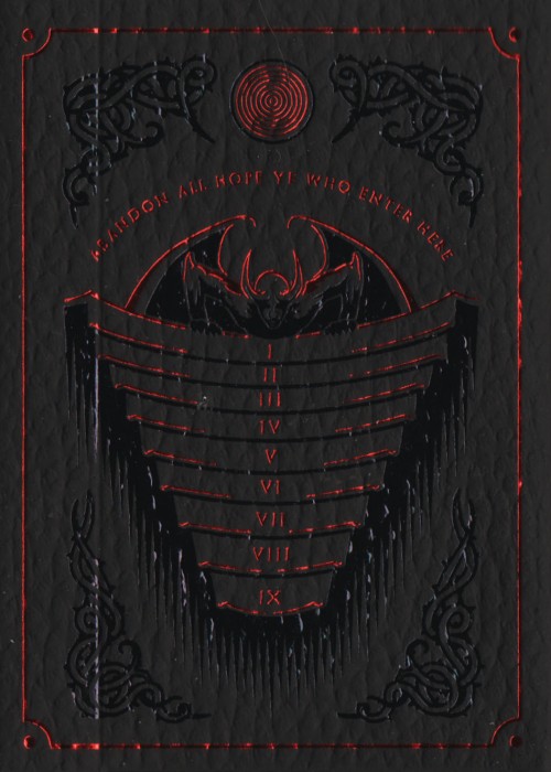 The new edition of the original Acheronte double-box tuck case. Includes the cards from Inferno Dite and Inferno Cocito in the most luxurious double-deck tuck case you can think of: printed in Italy by Archivio Tipografico on leather-like paper and adorned with red and black foil.