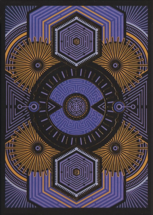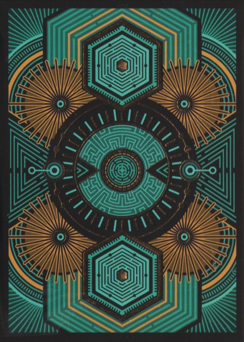 Fascinating colors, rarely found in nature. Turquoise symbolizing immortality and eternity, and the amethyst color that helps to keep a sober mind and control raging senses. Both are broken with royal gold and dark black, giving the decks a disturbingly fascinating character. What does it mean? The colors of the ocean depths, or maybe the depths of madness?