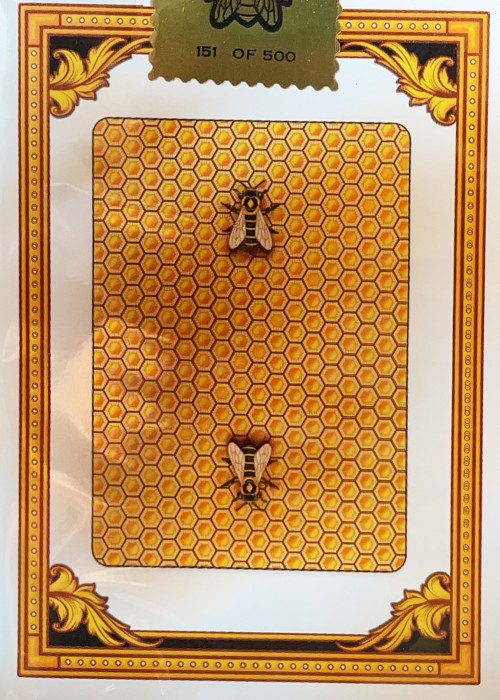 This is an ultra-limited gilded edition of the yellow Bicycle Honeybee playing cards. Only 500 decks were made. Beautiful black foil edges give a touch of elegance and shine to the deck. Each deck has an individually-numbered foil sticker seal. These must be seen in person to truly be appreciated!