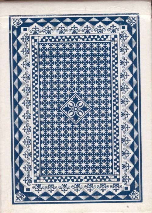 59Fifty New Era deck was made by U.S. Playing Card Co. for the New Era, a sportswear and cap company. The brand 59Fifty is a headwear/sports cap line for men. These cards were made a promotional item for stores in Japan. They were not available in rest of the world. The decks have red and blue pips and the jacks, queens and kings all sport the company\\\'s caps. The deck contains three jokers and a custom ace of spades, and one promotional card. The backs are traditional Rider Back in gold and black. There were two versions of these cards in existence: White version (more common) and Gold version (the rarest).