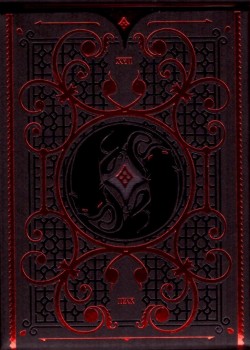 The Victorian playing cards Obsidian deck is composed of fifty two cards and two jokers. The project main idea is to replace the traditional court cards by symbols: scepter for the king, rose for the queen and pistol for the jack. Other cards stays as usual. The colors are copper for the red and silver for the blacks. The background is black with a victorian pattern. The cards are mirrored so they look the same upside down with subtile differences.